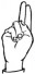 На ћирилици написано ЈАБУКА ЛЕВИЧАНИН састоји се из 15 слова [?]. Исписано ћириличном једноручном азбуком за глувонеме: